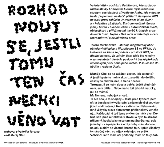 Shrnutí projektu: Mladí zelení a Kolektiv Průvodce vydalx v rámci projektu Naděje je v činech publikaci s názvem: Průvodce pro mladé lidi v časech hořící planety. Jedná se o sérii esejí a textů, které pojednávají o žalu, krizi a dalších pocitech vztažených ke změně klimatu.
