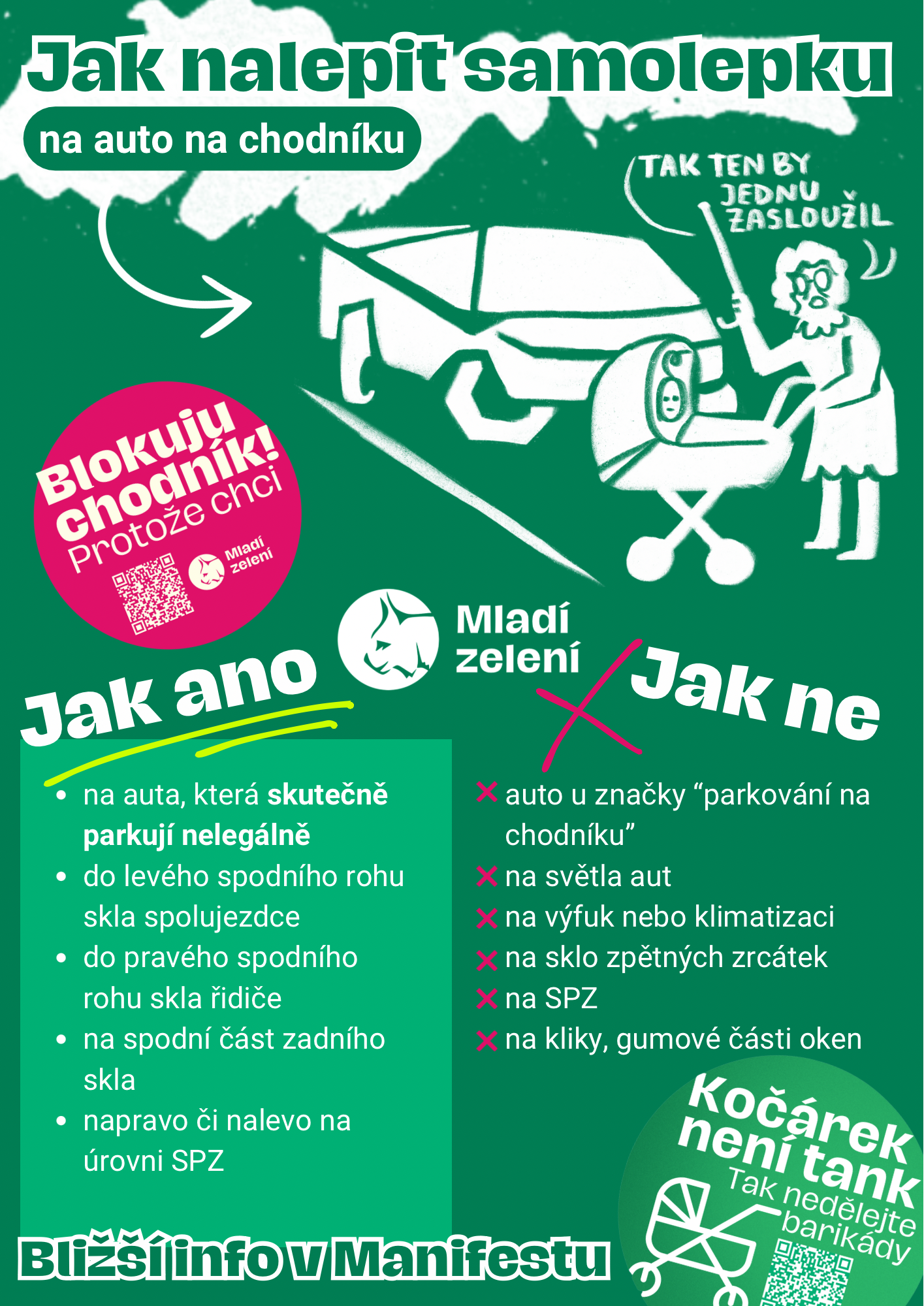 Chceš to to taky? Tak nám s tím pojď pomoct! Ozvi se nám na kontakt.mladizeleni@gmail.com nebo na sociálních sítích, převezmi si samolepky a nepřecházej tenhle každodenní problém ze svého okolí.